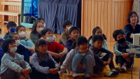 2024年4月12日 09時42分新しい英語の先生が来られました。英語で楽しく自己紹介をしていました。子どもたちも、とってもいい表情で英語にふれていました。