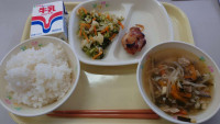 ご飯 牛乳 寄せ鍋 甘酢和え 手作りふりかけ