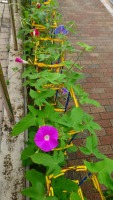あさがおが、きれいに咲いています。このところ、雨が降り続いていたので思うように咲きませんでしたが、今日は、とても生き生きと咲いています。心が和みます。